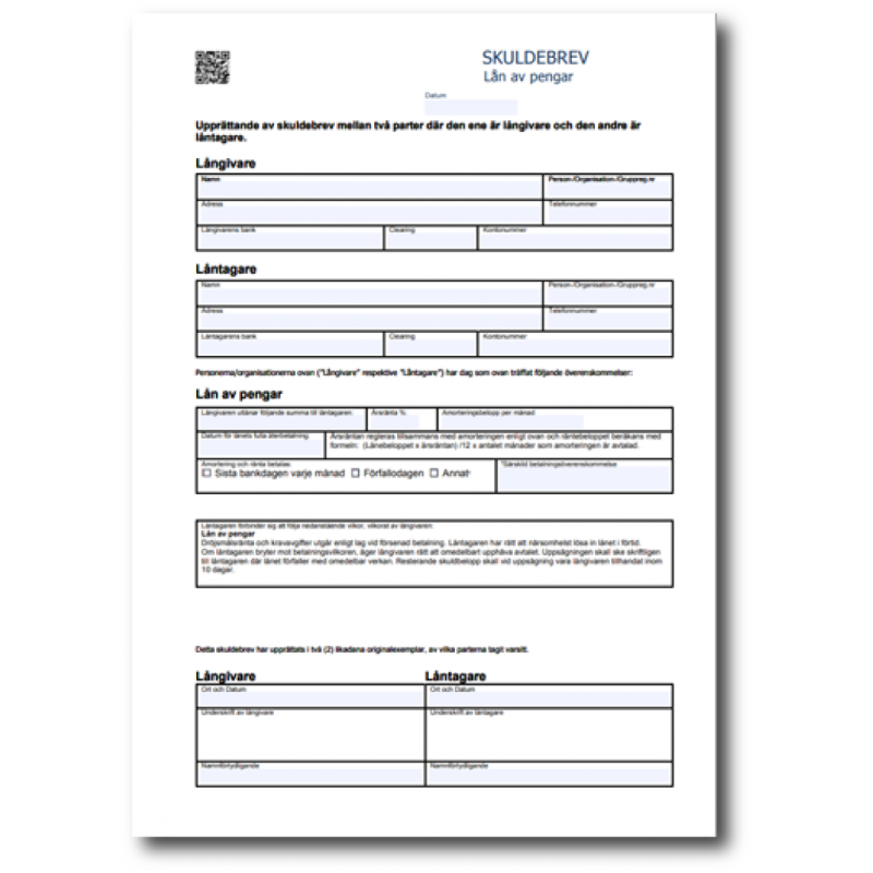 Ladda ner gratis låneavtal för privat utlåning mellan privatpersoner. Enkel och tydlig mall för att reglera lån utan mellanhänder på ett säkert och juridiskt korrekt sätt.