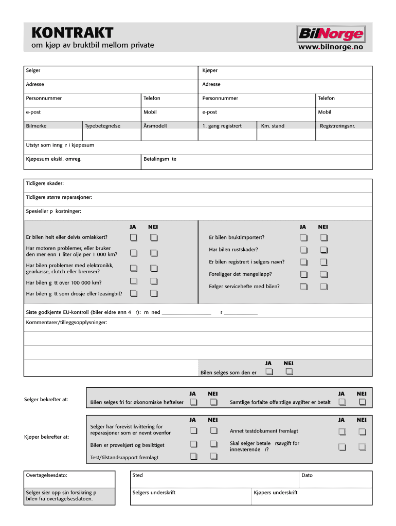 Ladda ner färdiga kontraktsmallar gratis här. Kontrakten upprättas i två exemplar och används på egen risk. Blocket AB ansvarar inte för innehållet i avtalen.