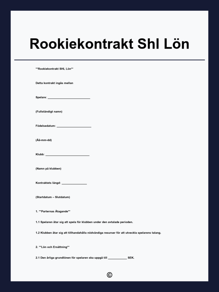Ladda ner gratis SHL-kontraktet för att enkelt och säkert reglera villkor inom hockey. Perfekt för spelare, tränare och klubbar som söker tydliga avtal.