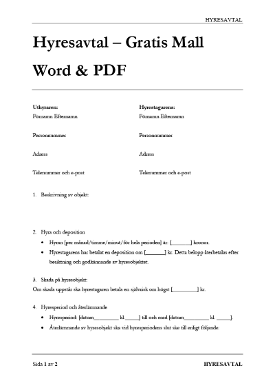 Ladda ner gratis kontraktsmall för lokal. Ett hyresavtal kan vara muntligt men skriftligt om någon part begär det. Enkel och tydlig guide för dig.