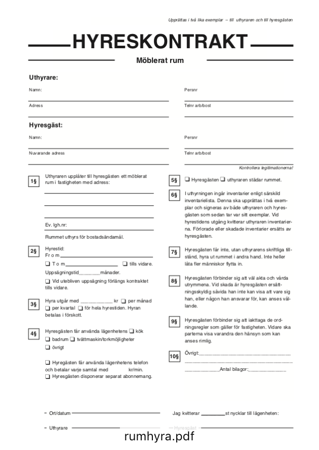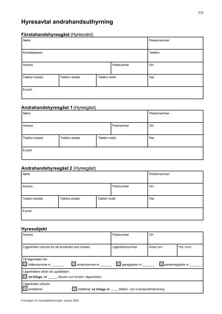 Ladda ner andrahandsuthyrning kontrakt hyresrätt gratis i PDF